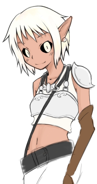 上半身以外は手抜き 試し描き ダークエルフってーと、悪魔神官的なイメージか、 もしくはその逆の、差別対象の悲壮イメージがだいたい?なので もっとカジュアルで明るくたくましいダークエルフというのがやってみたい。 まあ、エルフとダークエルフなんて、白人と黒人くらいの差異でいいと思うんだよな |
